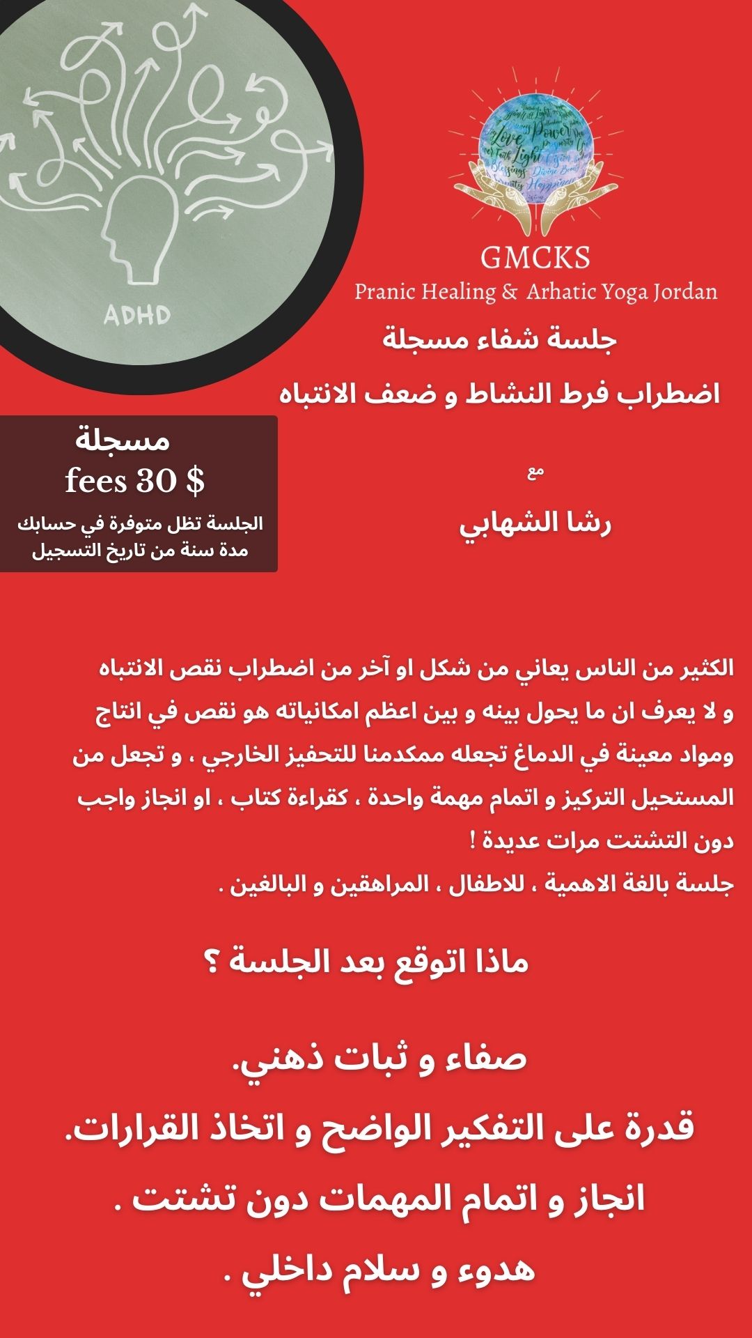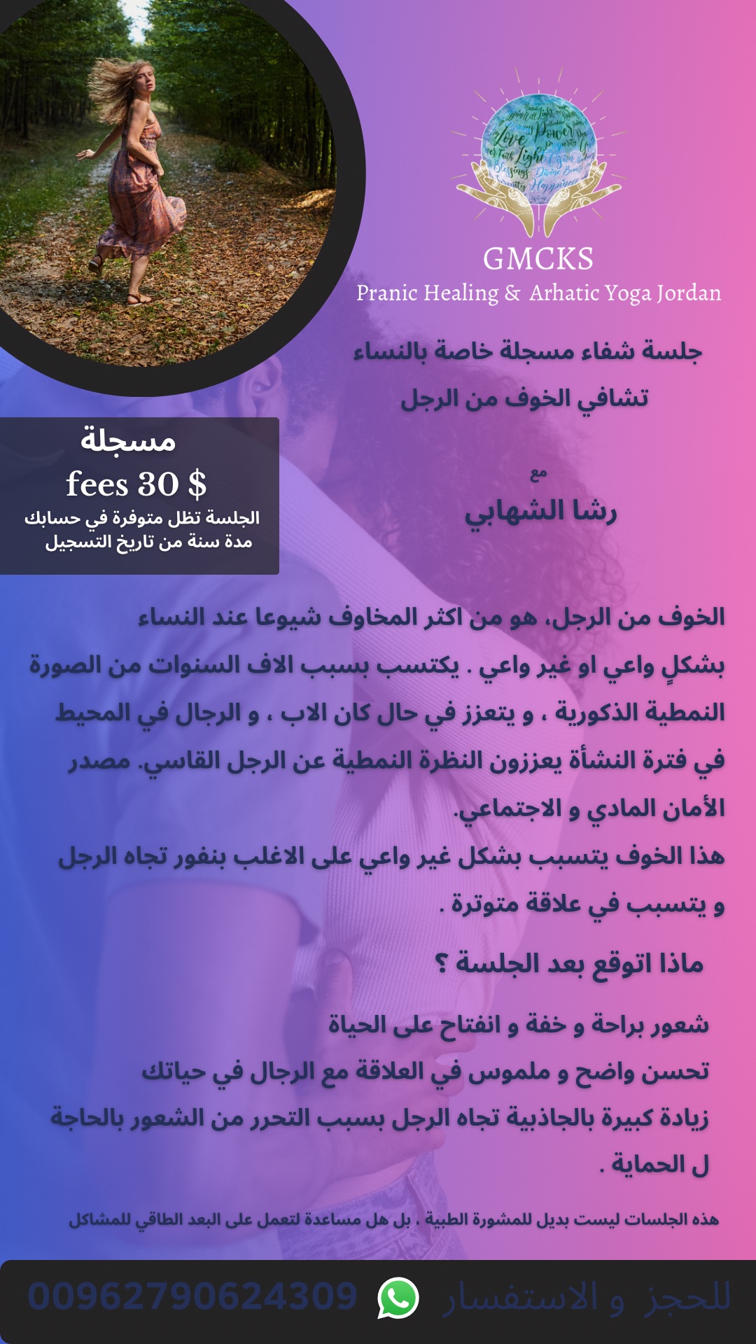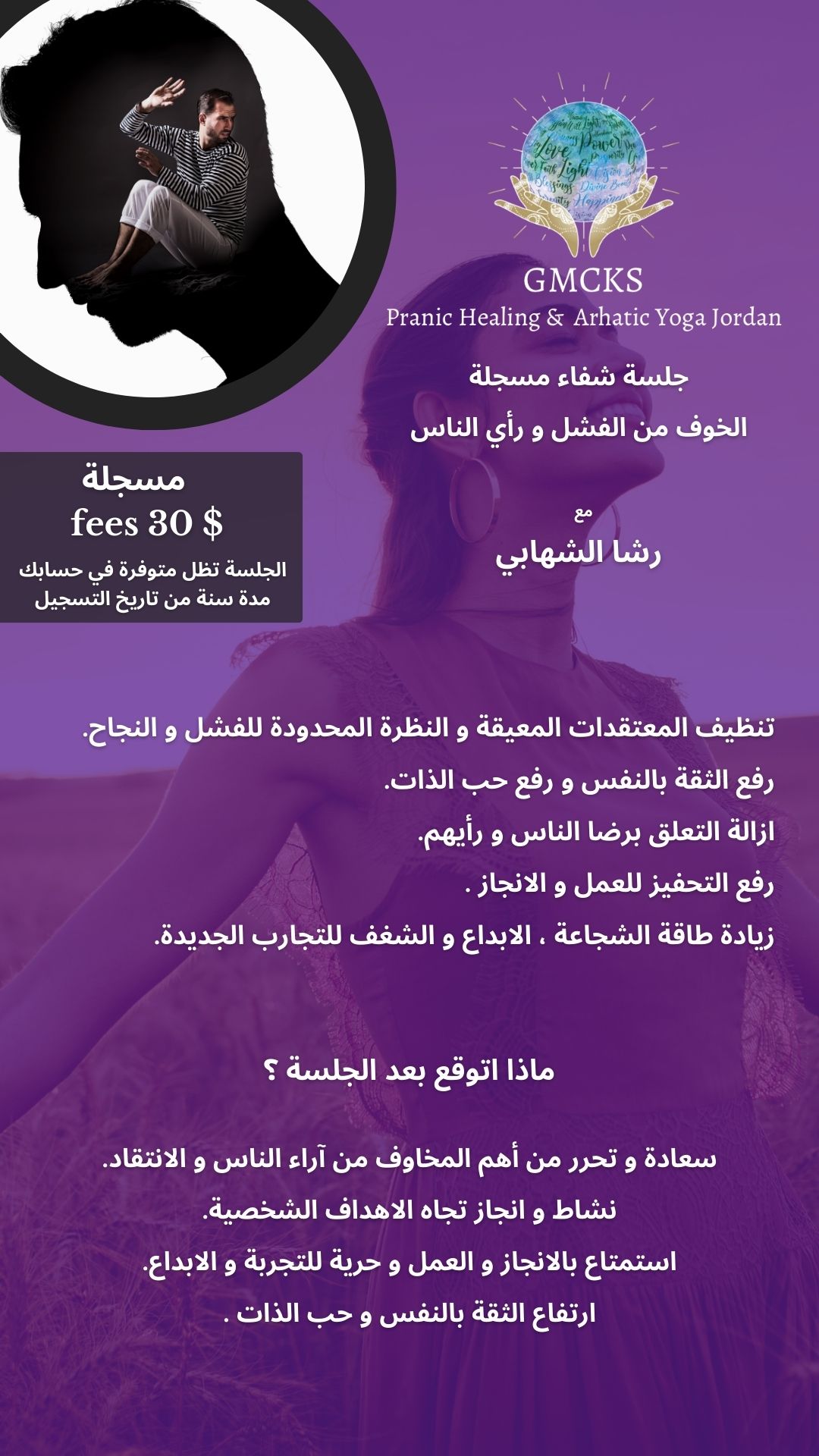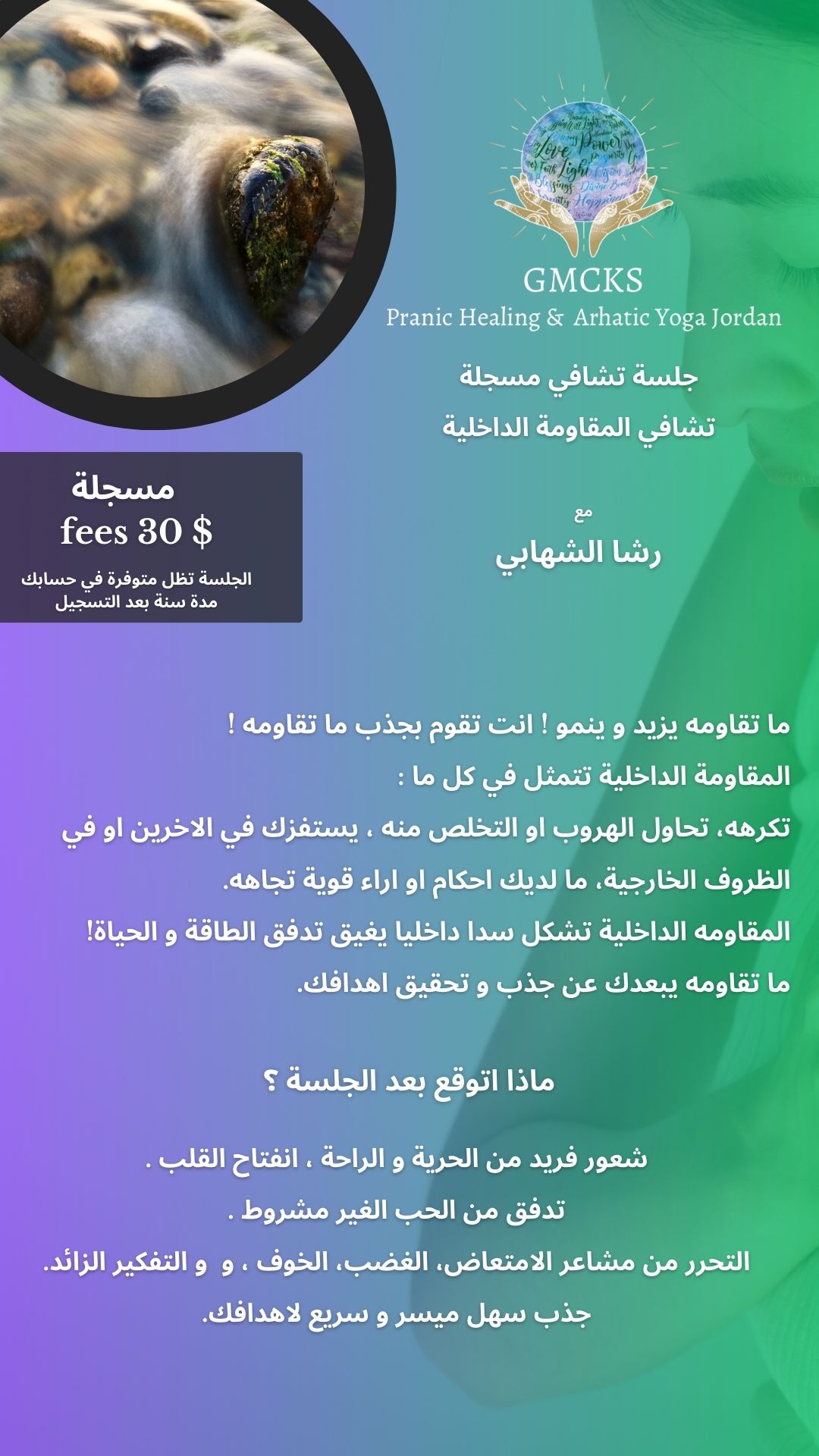 جلسة رائعة متل كل جلسات فعلا شعور بالراحة وطاقة اعلى وطمأنينة ووضوح اعلى برؤية الامور