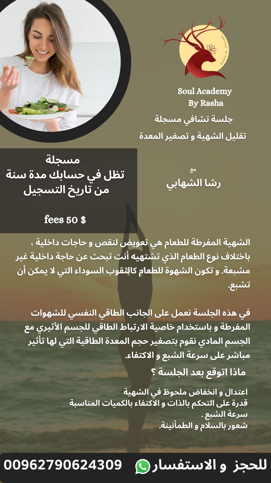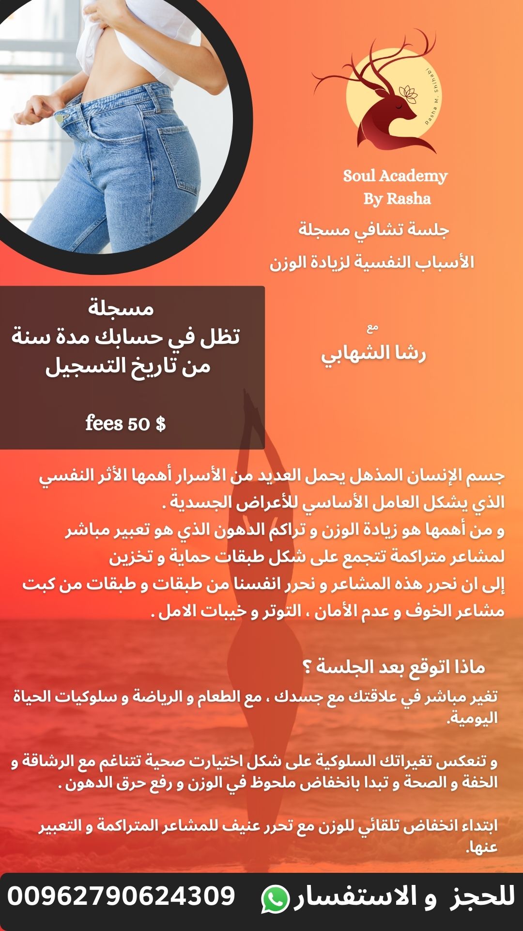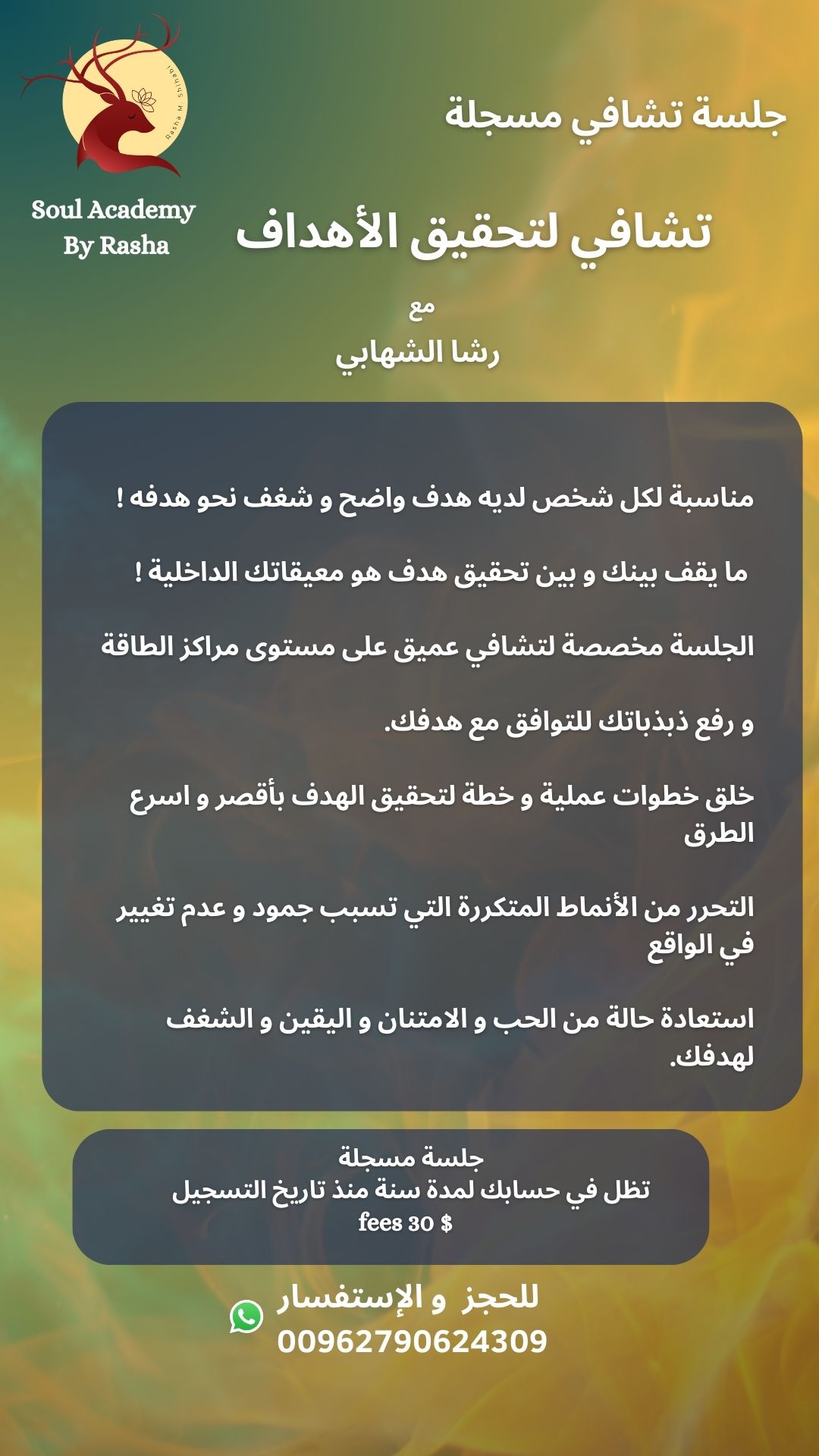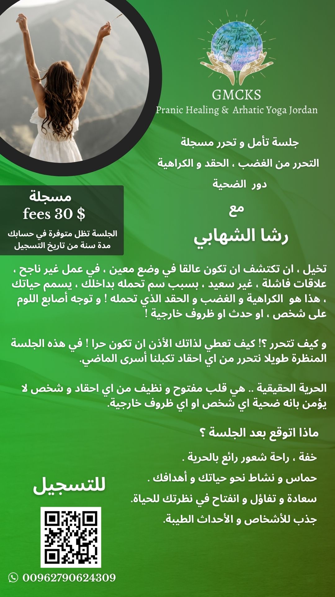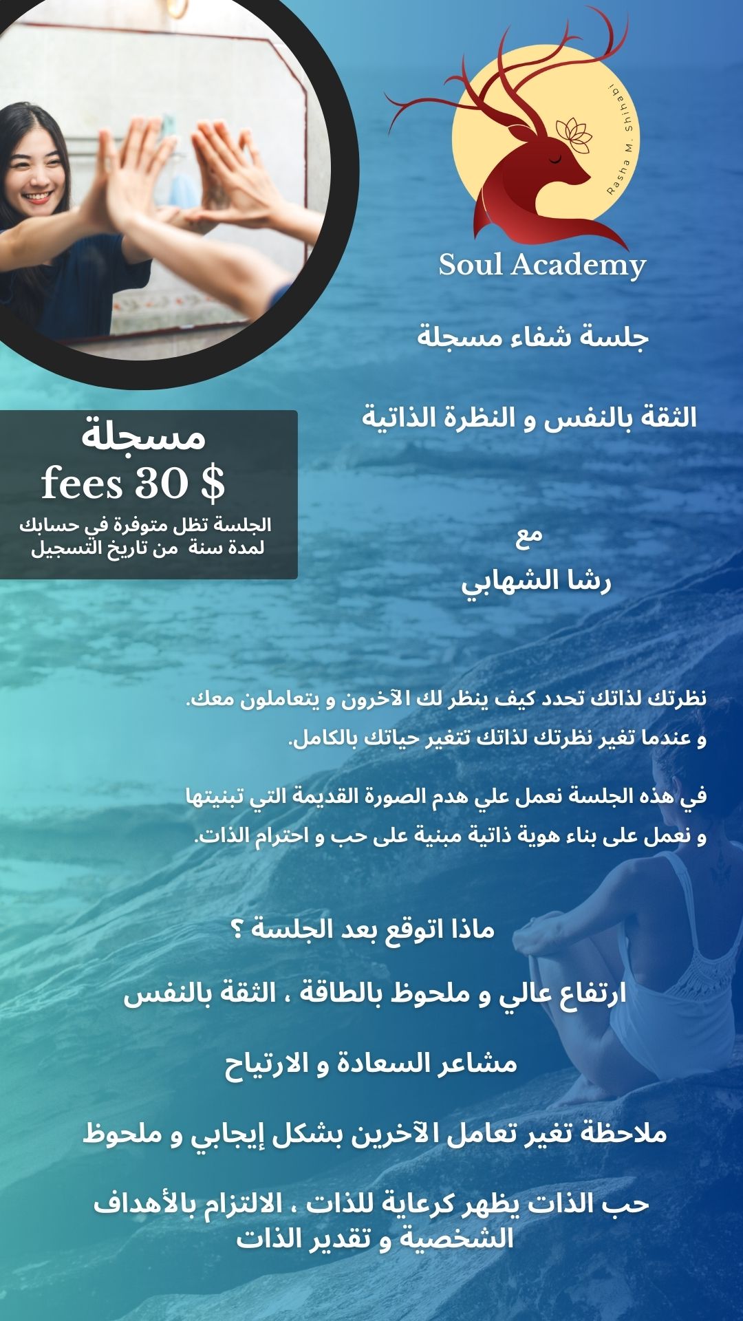 لحمد لله بعد تطبيق الجلسة لمدة 3اشهر حصلت ع وظيفة رائعة و بلد جديد .شكرا رشا ع دعمك ع حبك ع ووجودك