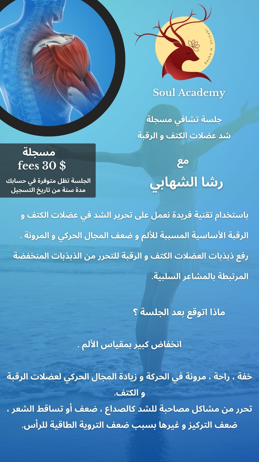 تجربتي بهذه الجلسة مو بس شعرت بلراحة من شد الاكتاف و الرقبة بس شعرت بجهاز العصبي كامل كيف دخل بحالة من السلام و الراحة