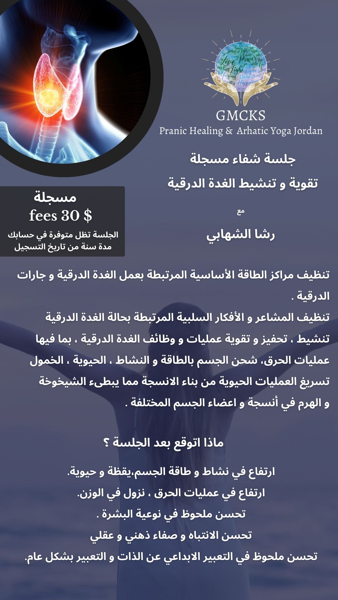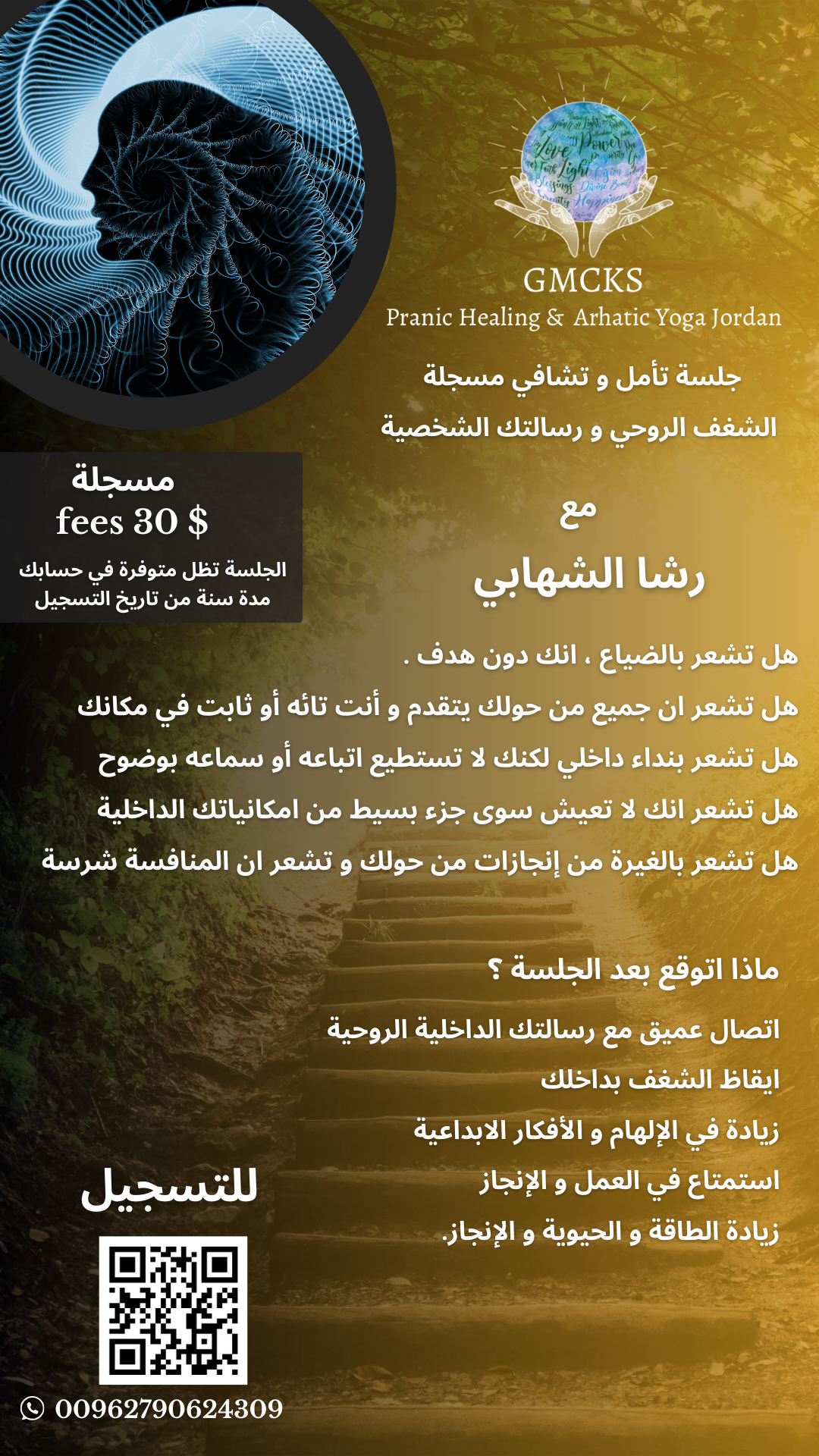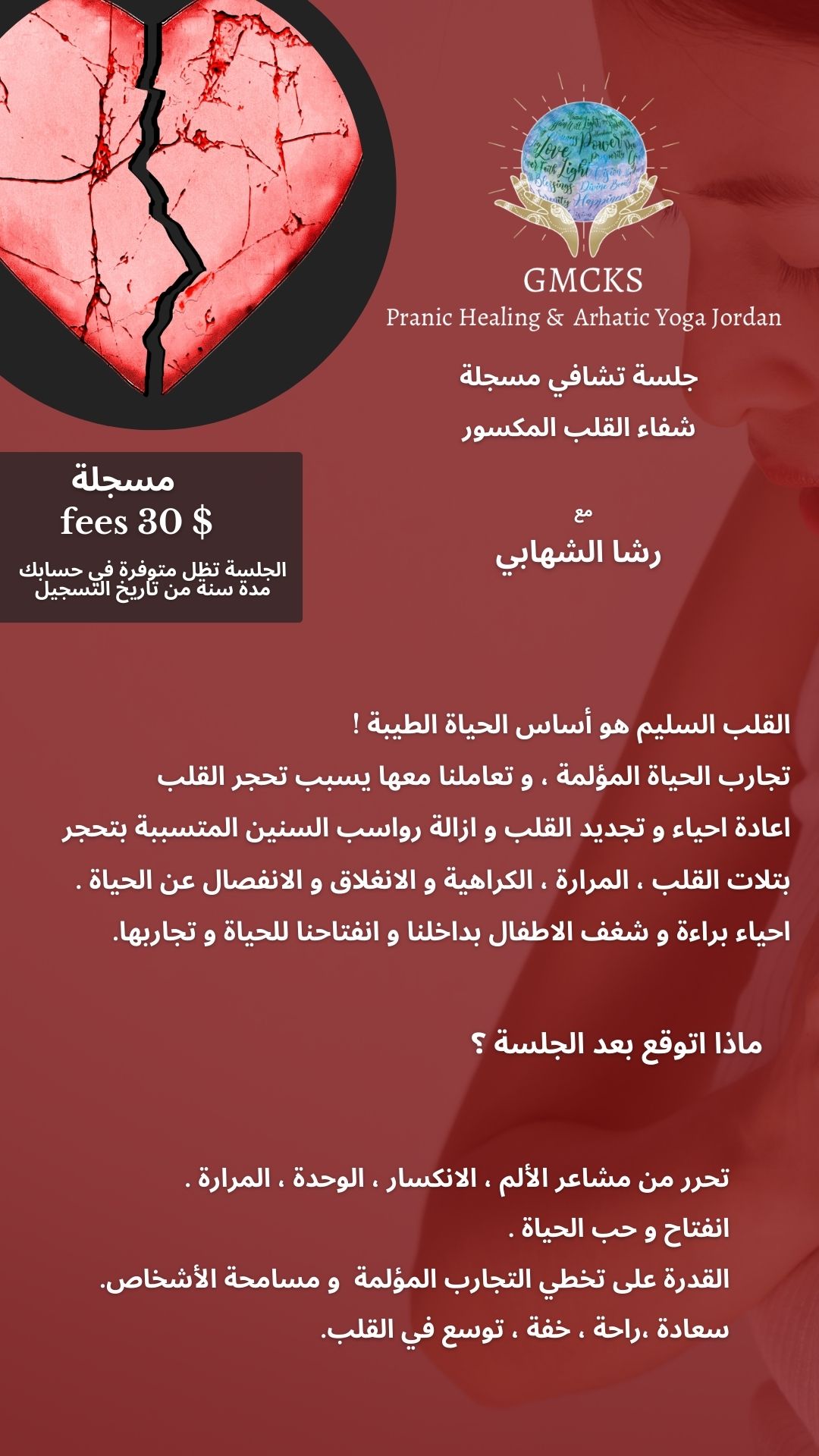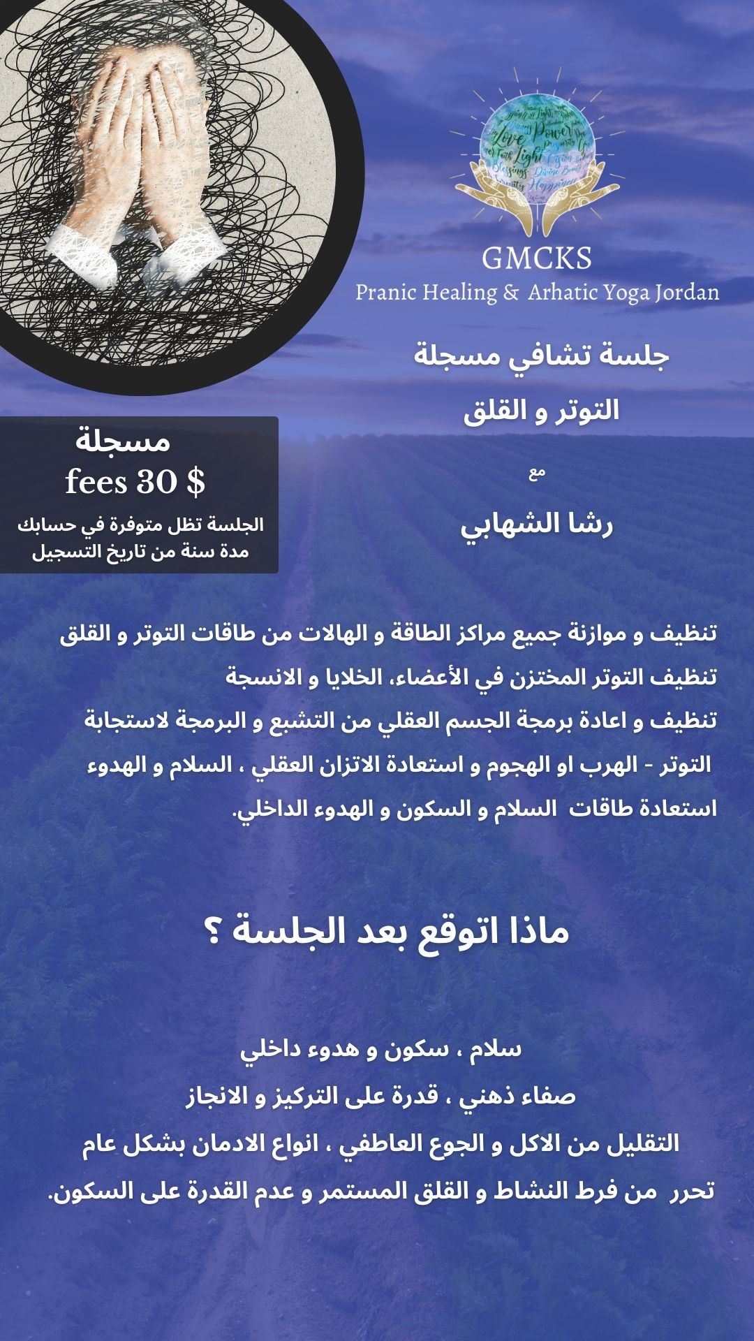 الجلسة مشاء الله احساسك واتصالك و وقت الدعاء حقيقي بيوصلنا بالله وبيفتح القلب ومساحة محبة وشعور عالي جدا