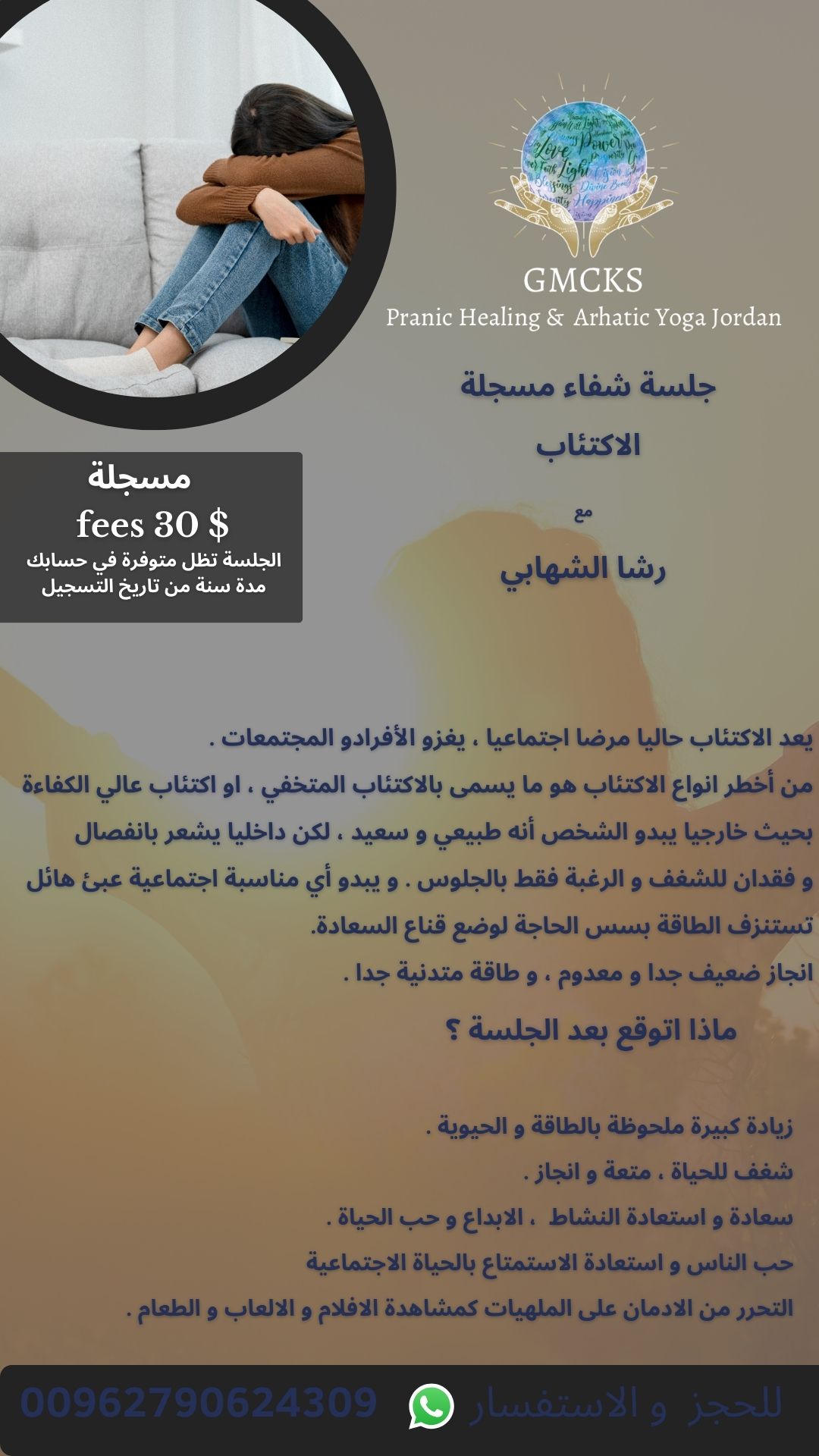 جلسة مهمة بالنسبة لي. البروتوكول واضح و مباشر و أحسست بالفرق في اليوم التالي من التطبيق. شعرت بنشاط أكثر و قدرتي على القيام بالمهام اليومية التي استثقلها عند مروري بنوبة اكتئاب أصبحت أقوى. جلسة مهمة لكل من يعاني من نوبات اكتئاب. و ما شاء الله قوة رشا الناعمة واضحة جدا في هذه الجلسة ❤️